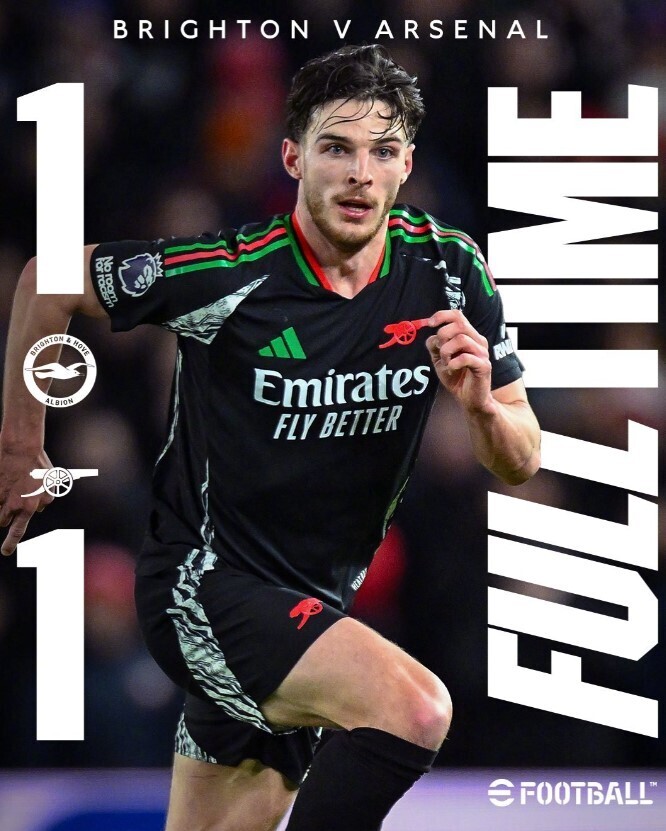 英超第20轮,阿森纳对阵布莱顿。这场比赛在运通社区球场开战。上半场,恩瓦内里顺利破门。下半场,若昂-佩德罗得到点球机会,自己操刀,点射追成和局。完场,阿森纳1-1布莱顿,阿森纳英超3连胜终结,多赛2场并且落后利物浦5分。