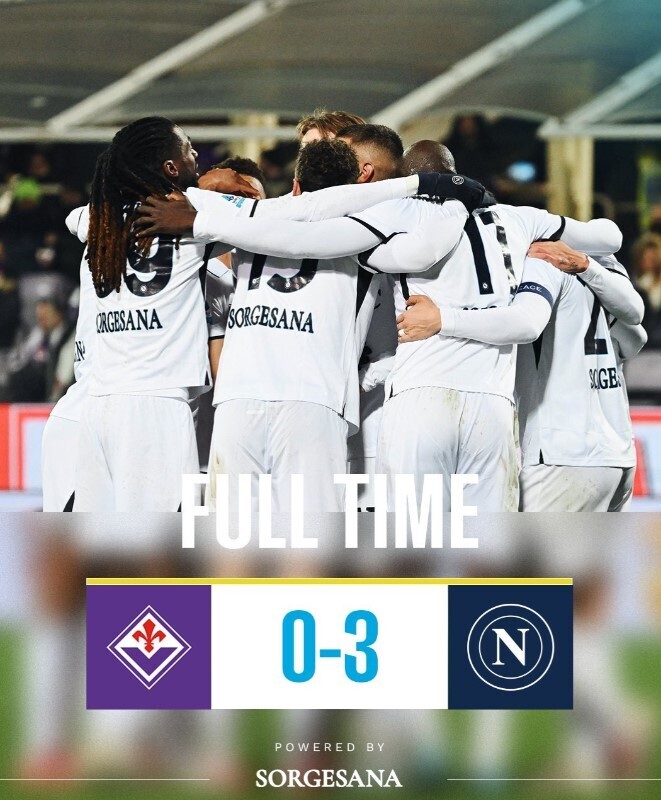 在意大利足球顶级联赛第19轮的比赛中,佛罗伦萨主场迎战那不勒斯。上半场,佛罗伦萨的卢卡库巧妙做球,内雷斯抓住机会,一条龙突入禁区并爆射破门,为那不勒斯取得领先。下半场,佛罗伦萨的莫雷诺出现失误,并在铲倒安古伊萨后被判罚点球,卢卡库主罚命中,扩大领先优势。随后,科穆佐在解围时出现失误,那不勒斯的麦克托米奈抓住机会推射破门。最终,那不勒斯以3-0的比分完胜佛罗伦萨。