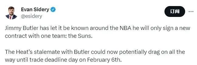 简单来说,就是巴特勒只想被热火交易到太阳,其他舔狗们趁早死了这条心。