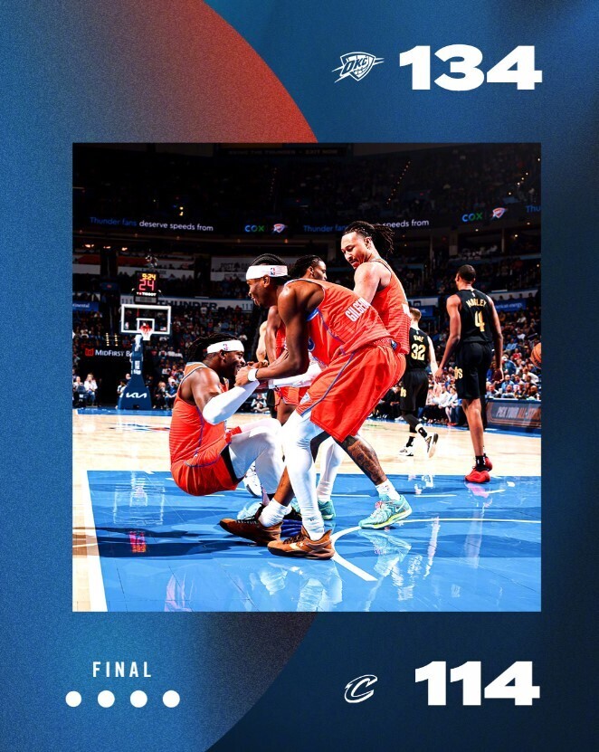 雷霆队与骑士队的榜首大战中,亚历山大三节砍下40分,杰伦-威廉姆斯贡献22分,雷霆前三节就确立了大比分优势,最终以20分的优势大胜对手,取得4连胜,成功复仇。