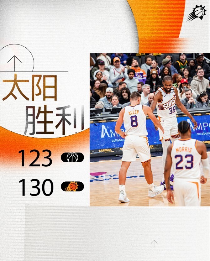 太阳队在与奇才的比赛中一直保持领先,奇才在末节一度缩小分差至3分,但布克的关键得分帮助太阳稳住阵脚,最终以7分优势战胜奇才,送给对手八连败。