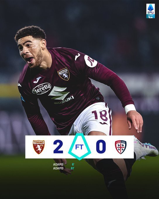 nba直播讯 在意大利足球顶级联赛第22轮的比赛中,都灵主场迎战卡利亚里,凭借切-亚当斯的出色发挥,都灵以2-0轻松取胜。比赛一开始,都灵便展现出强烈的进攻欲望。第6分钟,萨穆埃莱-里奇送出精准助攻,切-亚当斯抓住机会冷静破门,为都灵首开纪录。这一进球不仅为球队奠定了领先优势,也极大地鼓舞了士气。