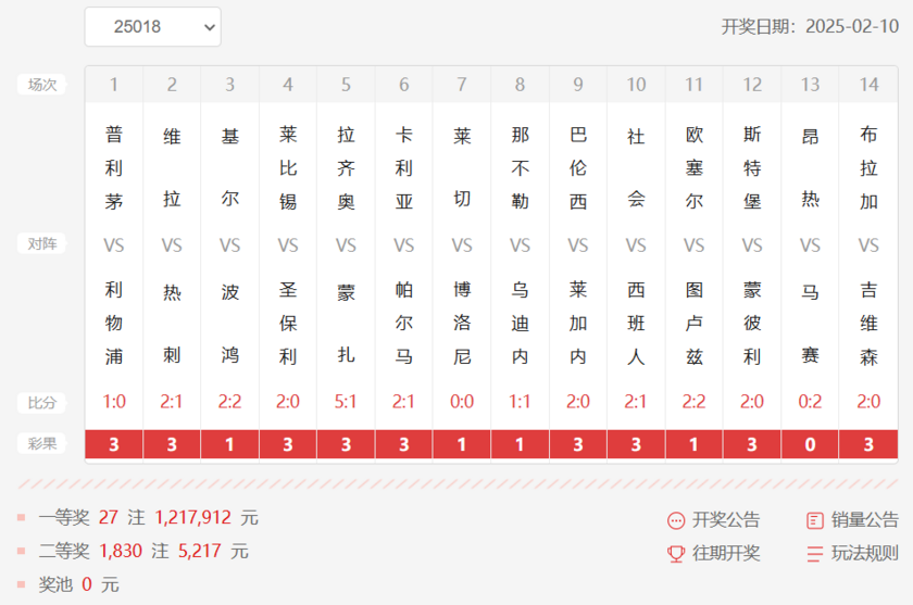 nba直播讯 北京时间2月10日凌晨,胜负彩第25018期结束了全部14场比赛的争夺。