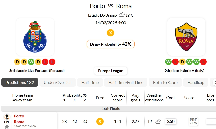 In Porto's last 3 games in Europa League there have been under 2.5 goals scored