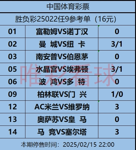 姜山:曼城周中欧冠主场对阵皇马,在哈兰德为球队两度取得领先的情况下,却在第86分钟和第92分钟连丢两球,惨遭皇马绝杀。格拉利什还在这场比赛中受伤下场,本轮联赛将和罗德里、阿坎吉一同缺阵。当然,曼城现在的伤病情况比之前还是恢复了许多,主力中卫迪亚斯已经复出,不至于在中卫位置上捉襟见肘。但球队冬窗引进的马尔穆什、冈萨雷斯、胡桑诺夫、雷斯等人效果并不算理想,对球队即战力的增强并不多。纽卡最近一直在出战杯赛,英联杯淘汰阿森纳进入决赛,足总杯也客场拿下了伯明翰。球队接下来要改变此前联赛连续主场不敌伯恩茅斯和富勒姆的被动局面,重新成为欧冠门票的有力竞争者。人员方面,纽卡主力中场乔林顿依然伤缺,主力中卫伯恩、主力左边锋戈登伤势无碍,不会影响本轮出战,所以纽卡阵容还是相对整齐。当然,往绩中曼城还是占据绝对优势,他们过去10次联赛对阵8胜2平,在联赛主场更是保持对纽卡的15连胜。不过本赛季首回合双方在纽卡之处1比1言和,也终结了曼城对纽卡3连胜的纪录。考虑到下周中曼城还要做客伯纳乌迎来与皇马的生死战,本轮联赛多少会因此受到影响,再加上主场15连胜的往绩确实差不多该到临界点了,这场比赛我觉得还是有防平的必要,双选3/1吧。
