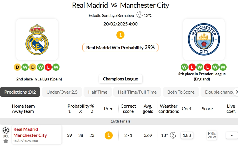 Real Madrid have a good record of 17 undefeated games of their last 20 encounters in Champions League