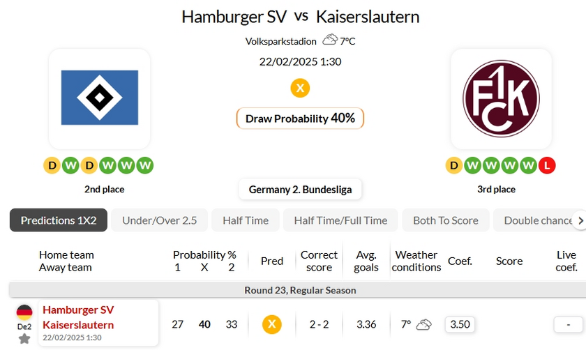 Kaiserslautern have won just 1 of their last 12 matches against Hamburger SV in all competitions