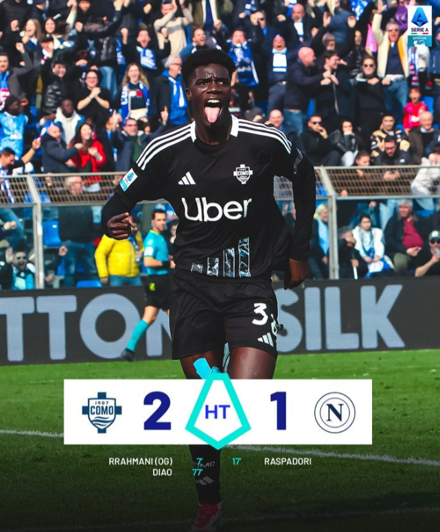 意甲联赛第26轮,科莫主场迎战那不勒斯,上半场拉赫马尼回传球失误直接乌龙送礼,随后肯普夫失误让拉斯帕多里单刀破门扳平比分。下半场,尼科-帕斯直塞助攻迪奥低射破门,科莫爆冷2-1击败那不勒斯。那不勒斯遭遇四场不胜,排名跌至联赛第二,争冠形势愈发严峻。