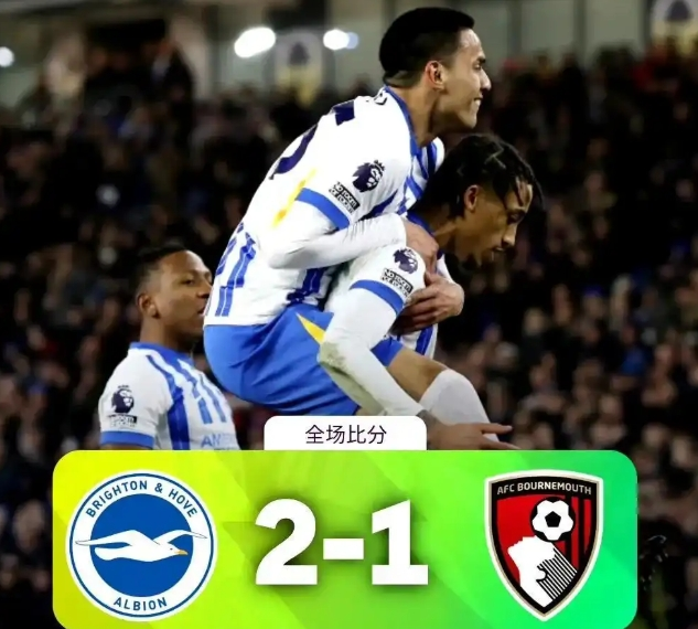 整场比赛,布莱顿虽然是主场作战,但是一直处于比较被动的局面。不过他们运气不错,在第12分钟靠点球先拔头筹。下半场小克鲁伊夫帮伯恩茅斯把比分扳平了,但很快维尔贝克就再次破门,帮助布莱顿重新领先。最后,布莱顿2比1险胜伯恩茅斯。