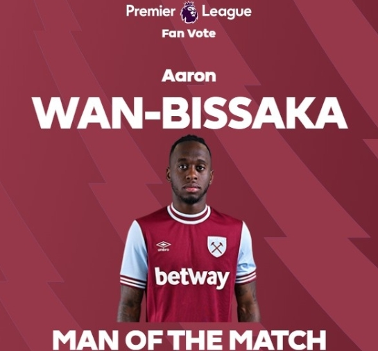 赛后英超官方的球迷票选全场最佳中,万比萨卡获得53.9%得票率,成功当选。