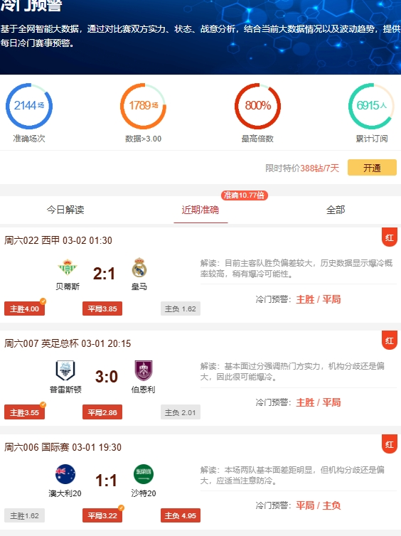 冷门预警