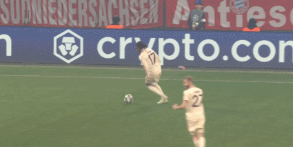 第73分钟,拜仁获得右侧角球机会,禁区后点凯恩被塔普索巴抱摔倒地,主裁判在亲自回看VAR后果断判罚点球。凯恩亲自主罚命中,完成了本场比赛的梅开二度,拜仁也以3-0的比分进一步扩大了领先优势。