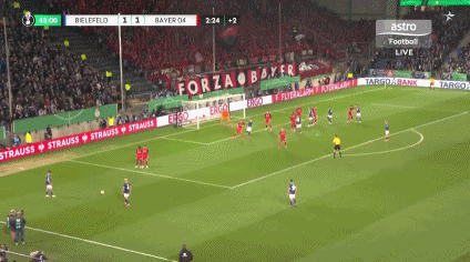 半场补时阶段,奥皮耶主罚任意球开到门前,格罗塞尔抢点垫射破门,比勒菲尔德2-1反超。