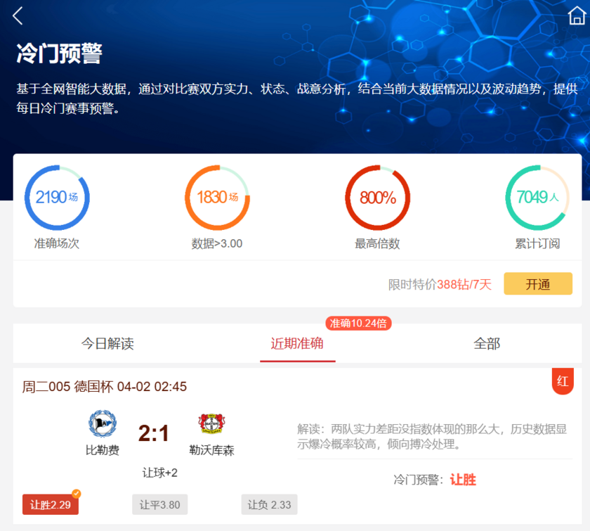 数据对曼城支持力度似乎还是相当不错,还是给到了-2的让步,但必须要注意的是,哪怕是此前没有伤病的情况下,过去三年曼城也没试过3球大胜莱斯特城,而球队仅仅两天前还进行了足总杯的赛事,3天后又要打曼市德比,以球队目前的阵容来说,实在是无法场场都全力出击了,此战不妨关注莱斯特最多小负。