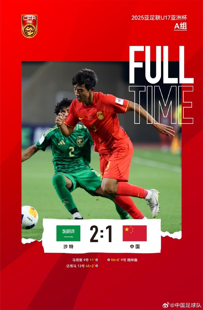 nba直播讯 北京时间4月4日凌晨,U17亚洲杯小组赛A组首轮,中国男足U17客场1-2惜败沙特U17,遭遇本届赛事开门黑。比赛第11分钟,国少门将依合散出击滑倒失误,马塔里轻松推射空门得手;补时阶段沙特再入一球扩大优势;直到第90+8分钟,魏祥鑫才在对方门将黄油手失误的情况下,为国少打入挽回颜面的进球。整场比赛国少控球率为50%,射门次数6-14大幅落后。