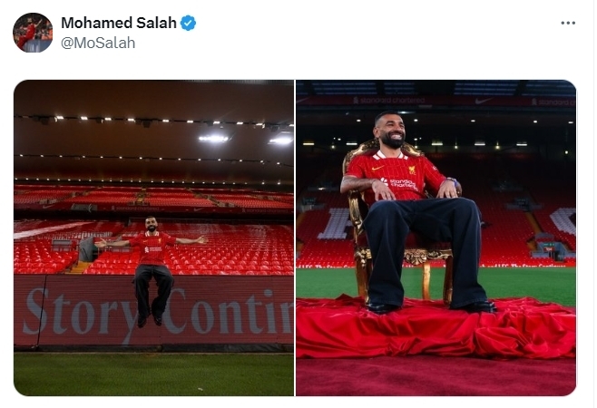 萨拉赫在官方宣布续约后第一时间发布了自己坐在王位上的续约照