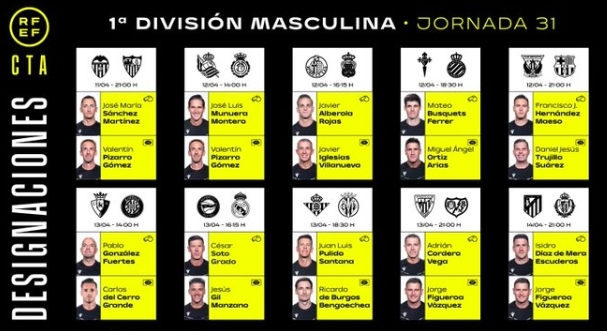 nba直播讯 据西班牙足协官网发布的公告,因个人原因,裁判胡安-马丁内斯-穆努埃拉将不再执法本轮西甲皇马和阿拉维斯的比赛,他的替代者是塞萨尔-索托-格拉多。