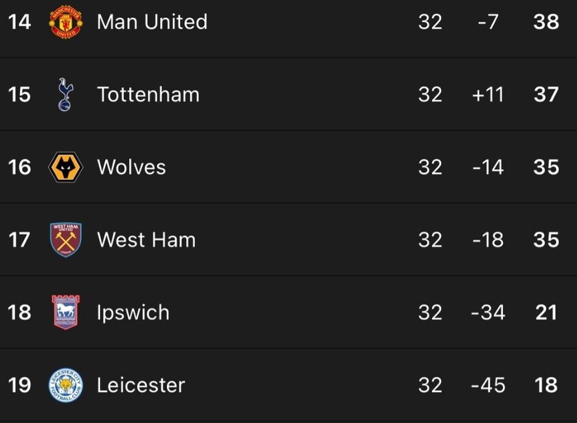 此外,虽然曼联和热刺目前仅排名第14和第15位,但如果他们能夺得欧联杯冠军,仍有可能拿到一个欧冠席位,所以需要在欧联杯赛场更加努力争冠。
