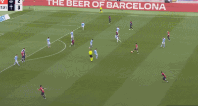 第64分钟:巴萨加强攻势,奥尔莫在禁区内接球后,低射远角得分,为巴萨扳回一分,比分为2-3。