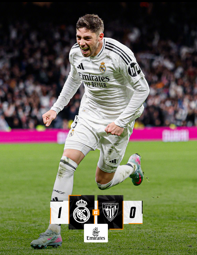 西甲联赛第 32 轮,皇家马德里主场对阵毕尔巴鄂竞技。上半场维尼修斯多次突破制造险情,但未能取得进球。下半场恩德里克越位,维尼修斯进球无效,巴尔韦德补时阶段世界波破门。皇马 1-0 战胜毕尔巴鄂竞技,收获三分。