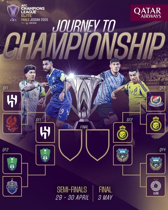 nba直播讯 北京时间4月28日凌晨,24/25赛季亚冠精英联赛1/4决赛,川崎前锋经过加时赛3-2力克萨德,挺进四强。至此,亚冠半决赛对阵出炉: