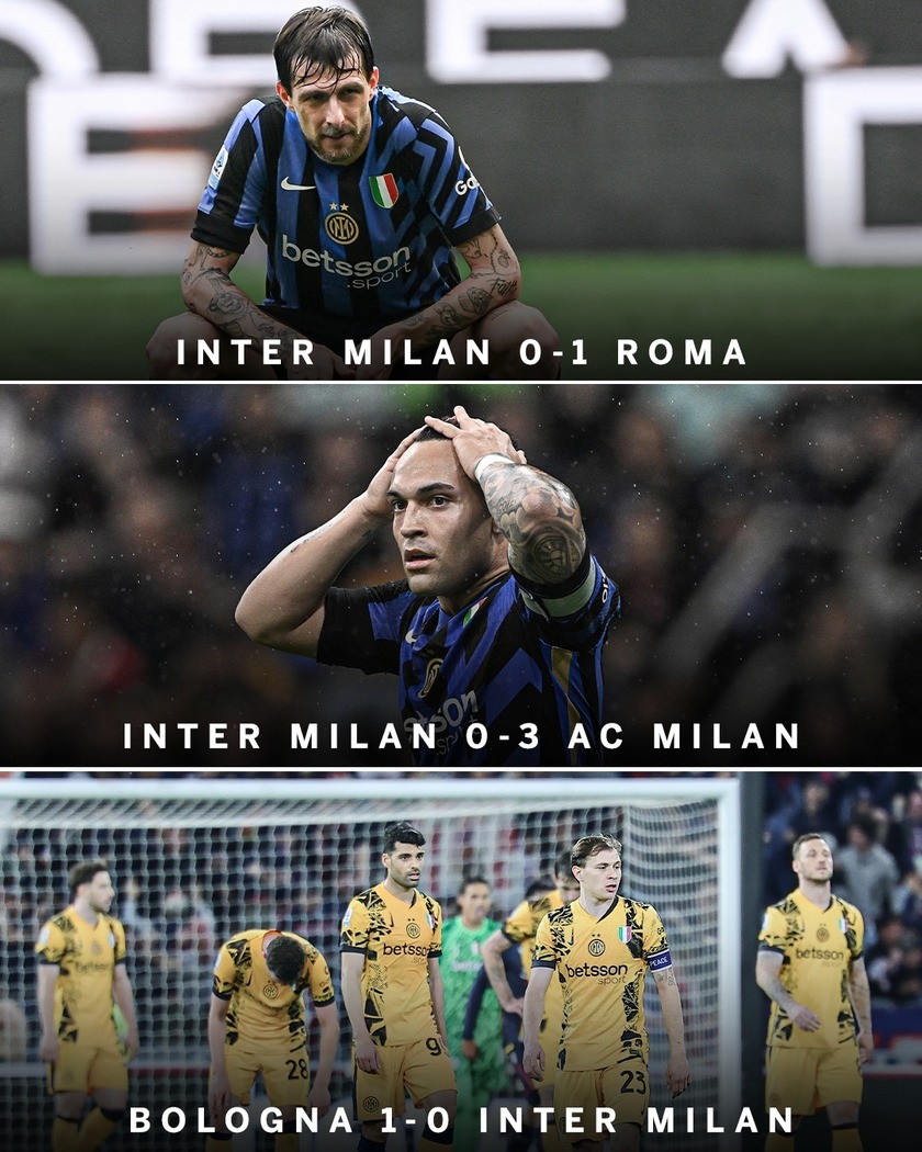 国米先是在上周的联赛0-1被博洛尼亚绝杀,多轮不败被终结,之后在周中的意大利杯半决赛次回合中,国米0-3负于AC米兰,防线被莱奥、特奥等球员轮番冲击,暴露出边中结合防守的严重漏洞,最终以总比分1-4被淘汰出局,无缘意大利杯决赛。