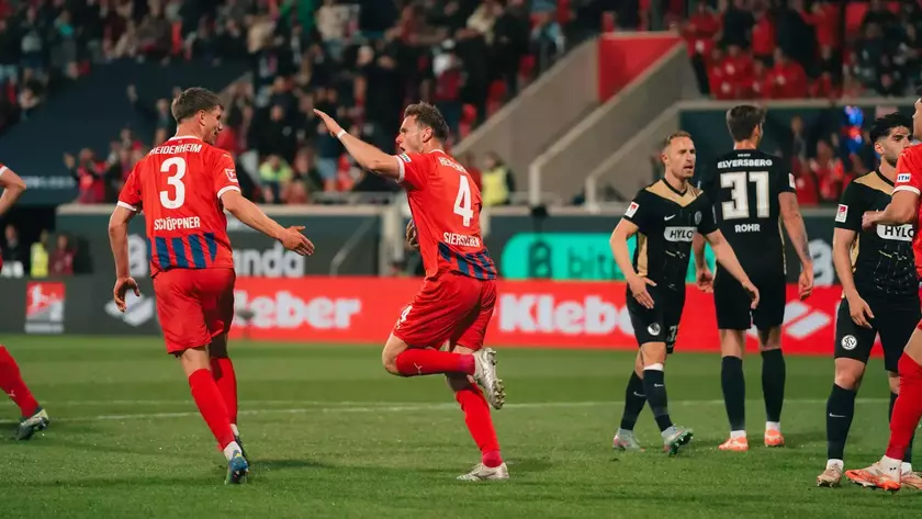 半场休息后海登海姆主帅施密特连续换上包括保罗-万纳在内的三人,最终替补球员和战术上的调整让海登海姆找回比赛感觉,西尔斯莱本和洪萨克的进球将总比分扳平,两球落后的海登海姆并未放弃。第52分钟,西尔斯莱本接队友开出的角球,力压防守球员头槌破门,为主队扳回一城。第67分钟,洪萨克在禁区混战中抓住机会,一记精彩的凌空抽射将比分扳平为2-2。