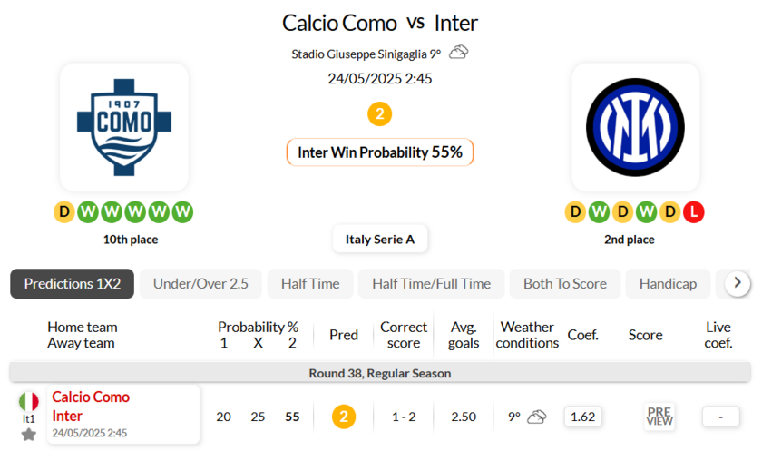 - Calcio Como have not suffered any defeats in their 8 most recent Serie A matches