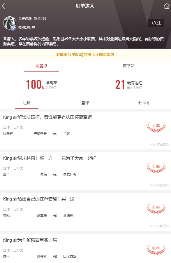 近7连红!点击获取King sir独家,近期状态火热独家密报👉《至尊通胜》今夜竞彩热门赛事解析