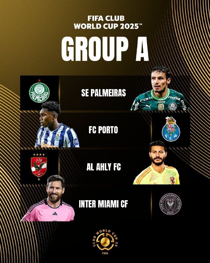 2025年国际足联俱乐部世界杯A组集结了来自四大洲的顶级豪门:南美解放者杯冠军帕尔梅拉斯、欧冠常客波尔图、非洲霸主开罗国民,以及东道主美职联新贵迈阿密国际。四支球队风格迥异,既有传统技战术流派的碰撞,也有新老势力的交锋。