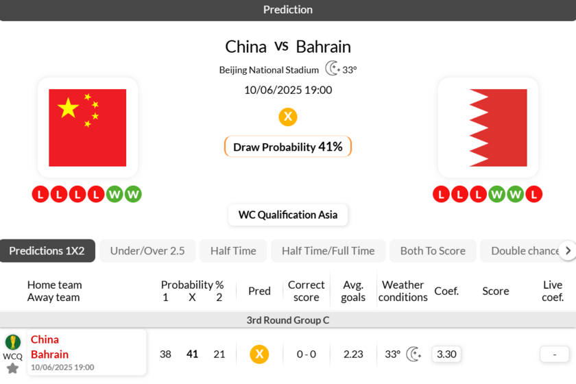 - In their last 25 games in all competitions, China have a poor record of just 4 wins.