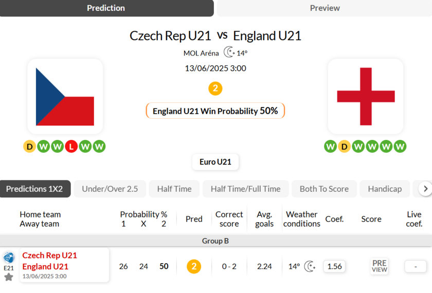- Czech Rep U21's performance has been disappointing of late, as they have won just 1 of their 7 most recent Euro U21 clashes.