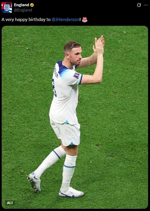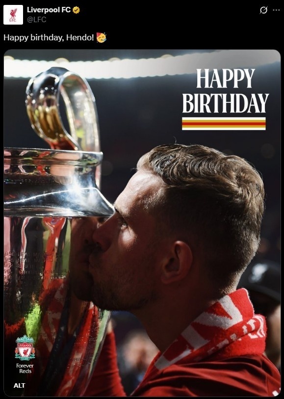 乔丹-亨德森今日迎来35岁生日,利物浦&英格兰队社交媒体送祝福