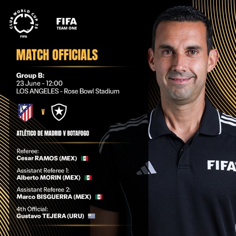 nba直播讯 北京时间6月22日, 国际足联公布了北京时间6月24日世俱杯比赛的裁判安排,塞萨尔-拉莫斯将执法马竞vs博塔弗戈。