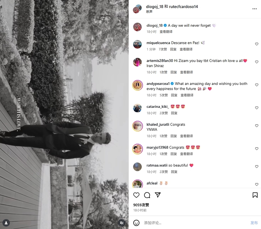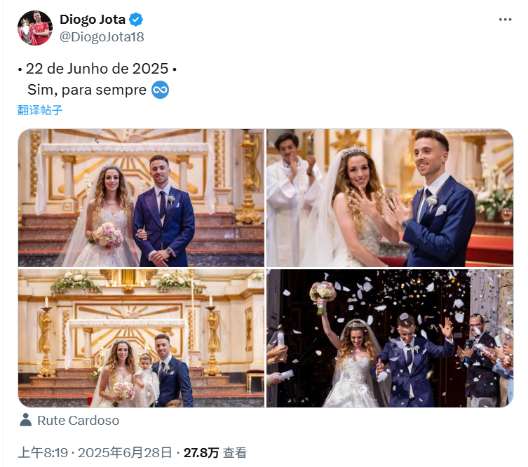 值得一提的是,6月22日,若塔才刚刚和妻子举办了婚礼,他6月28日在社交媒体晒出了婚礼的照片,并配文:“2025年6月22日,是的,永远”。而若塔最后一条社媒定格在了昨天,他发布了婚礼的纪录片。无数球迷涌入若塔社媒留言:🕊️🕊️🕊️🕊️🕊️