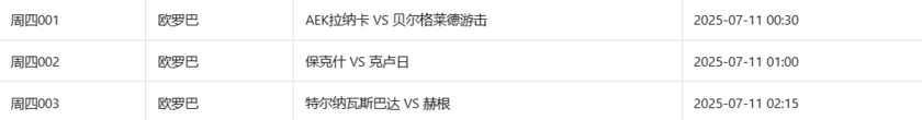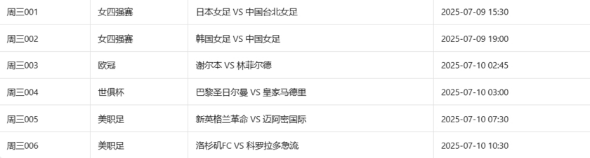 周二-周四,东亚杯火热开战,期待中国女足取得开门红!世俱杯两场半决赛引人注目!欧冠、欧联杯资格赛重回视野!梅西火热状态能否带领迈阿密高歌猛进,都非常值得期待!球迷狂欢👉新人享376礼包!送5天冷门预警+专家风向标!