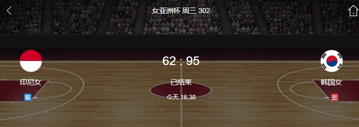 nba直播讯 北京时间7月16日,女篮亚洲杯小组赛 第3轮,韩国女篮对阵印度尼西亚女篮。半场韩国女篮48-34印尼女篮,最终韩国女篮95-62印尼女篮。韩国女篮朴智铉18分5板7助,成基贤15分2助;印度尼西亚女篮皮埃尔-路易16分7板,法伊扎图斯-绍伊玛11分2板1助。