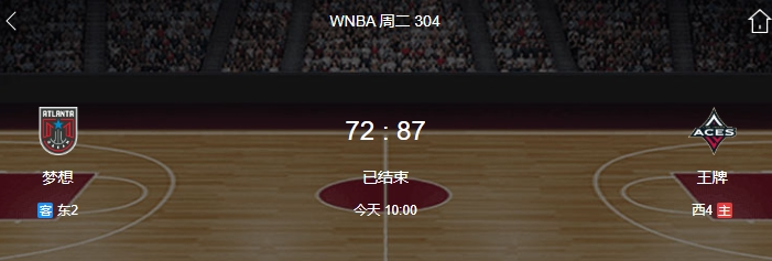 nba直播讯北京时间7月23日,WNBA常规赛,拉斯维加斯王牌87-72战胜亚特兰大梦想,阿贾-威尔逊24+5+12、达娜-埃文斯14+2+2;阿莉莎-格雷24+2+8、乔丁-肯娜达12+6+4。