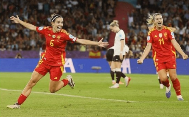 半决赛面对强大的德国女足,双方鏖战90分钟仍0-0不分胜负,来到加时赛第113分钟,邦马蒂禁区基本上0角度的情况下抽射破门!西班牙女足绝杀了德国女足,昂首挺进决赛。