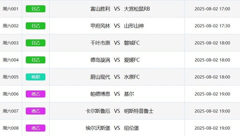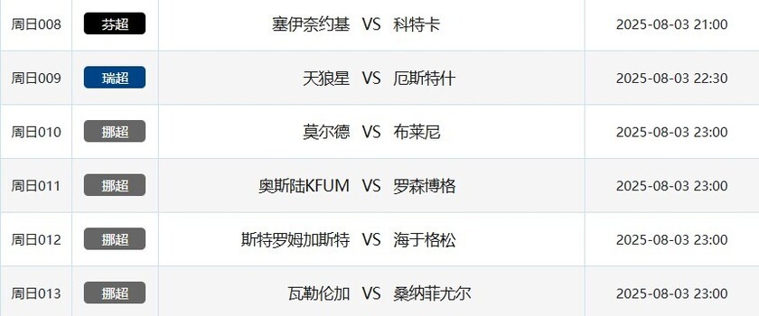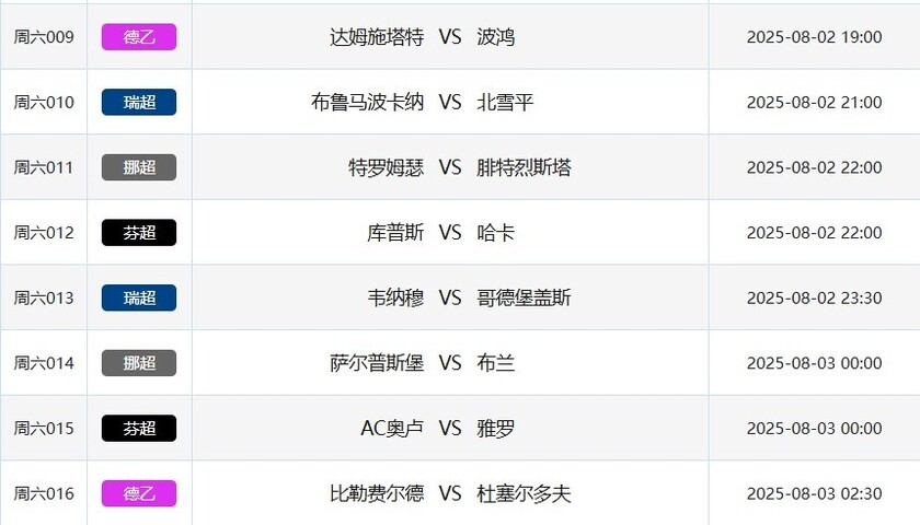 nba直播讯 北京时间8月1日,本周竞彩待开售安排如下,周五(8月1日)共2场,包括1场芬超、1场德乙。周六(8月2日)共16场,涵盖4场日乙、1场韩职、5场德乙、2场瑞超、2场挪超及2场芬超。周日(8月3日)共13场,包括1场日乙、3场德乙、3场瑞超、5场挪超及1场芬超。周一(8月4日)共3场,分别为2场芬超和1场瑞超。