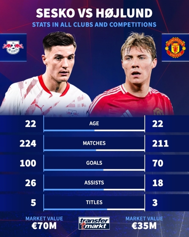 nba直播讯 北京时间8月6日,多家媒体报道,曼联已7500万欧+1000万欧正式报价斯洛文尼亚国脚塞斯科,随后德转晒出了塞斯科与红魔现任中锋霍伊伦的数据对比,在同为22岁的情况下,塞斯科的所有数据都好于霍伊伦。