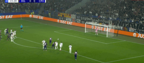 比赛第14分钟,哥本哈根在角球防守时出现推人犯规,主裁判判罚点球,巴塞尔的沙奇里主罚命中,帮助球队取得1-0领先。