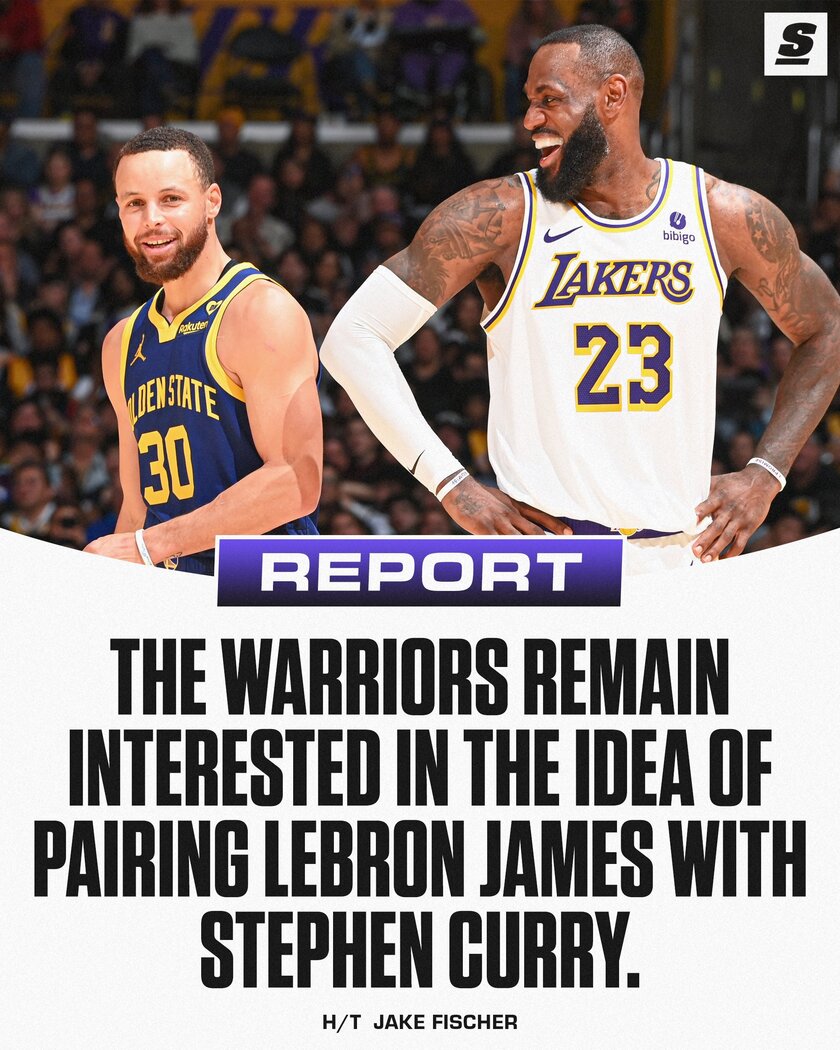 nba直播讯 据名记Jake Fischer报道,勇士在过去18个月里多次致电联系湖人,探讨能否通过交易得到勒布朗·詹姆斯来和斯蒂芬·库里搭档 。
