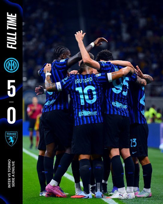 nba直播讯 北京时间8月26日凌晨,意甲首轮,国际米兰坐镇梅阿查球场迎战都灵。上半场第18分钟,巴雷拉助攻巴斯托尼头球破门,国米1-0领先。第36分钟,苏西奇直塞,小图拉姆前插低射得手,国米2-0扩大优势。下半场第52分钟,劳塔罗逼抢得球后小角度低射破门,3-0。第62分钟,巴斯托尼左路斜传,小图拉姆头球再下一城完成双响,4-0。第72分钟,国米前场逼抢造成都灵门将失误,新援博尼得球低射锁定胜局,5-0。最终,国米5-0大胜都灵,新帅齐沃首秀告捷。