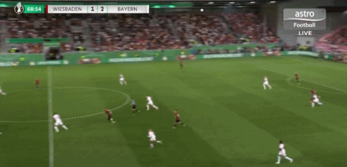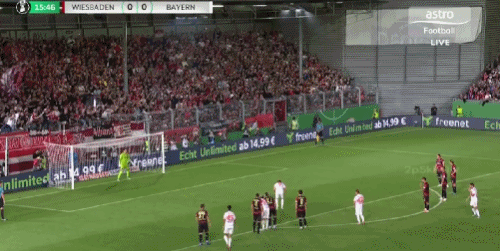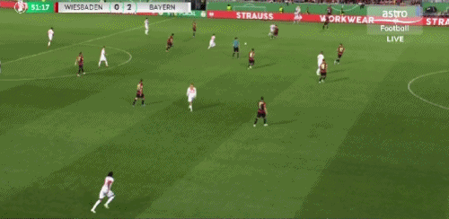 取得领先后的拜仁继续掌控着场上局面,不断对韦恩威斯巴登的防线发起冲击。第27分钟,迪亚斯门前包抄,近距离的打门被对方防守球员奋力挡出。第32分钟,格雷罗在点球点附近背身抽射,对方门将反应迅速,飞身将球扑出。上半场结束,拜仁1-0暂时领先。