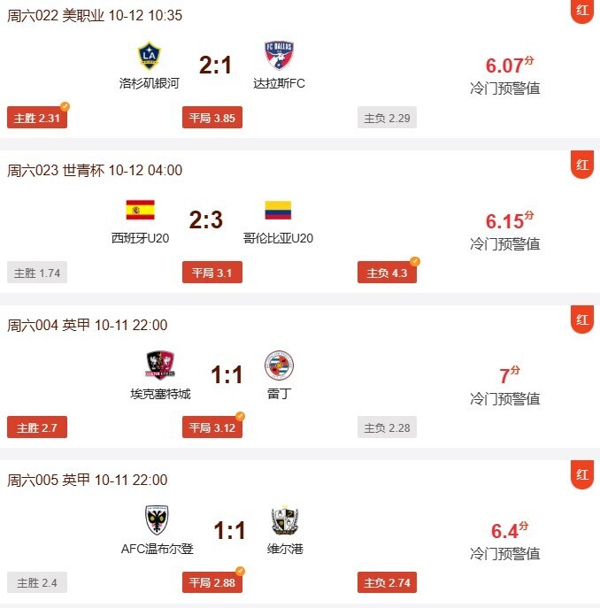 冷门预警:周日冷门比赛已抓取,助你竞彩一路畅通