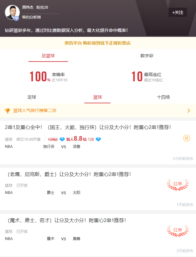 近10中10舍我其谁!特约分析师周伟杰单挑重心,速速点击查看