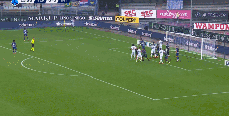 上半场第16分钟,恰尔汗奥卢开出左侧角球,泽林斯基迎球世界波破门,帮助国际米兰1-0取得领先。