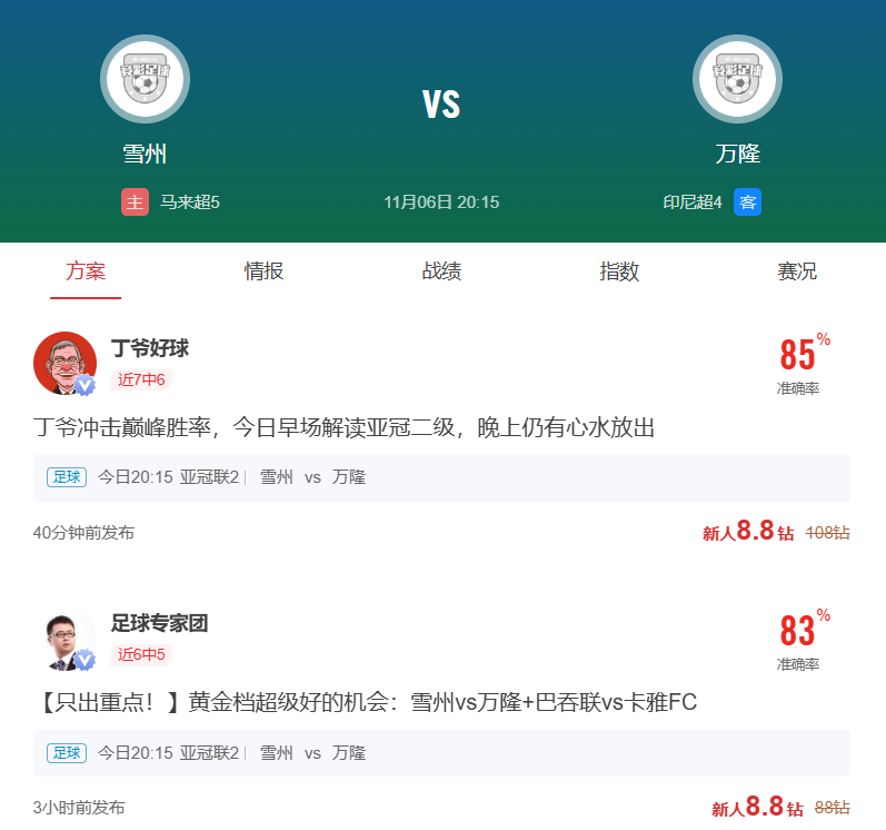 历史交锋方面,万隆占据心理优势,在本赛季首回合交锋中主场击败雪州。雪州虽拥有主场之利,但亚冠表现低迷、防守漏洞突出且伤病情况严重;万隆则整体实力占优、状态正佳、攻防均衡且交锋占优。综合来看本场比赛万隆客场取胜的可能性较大。