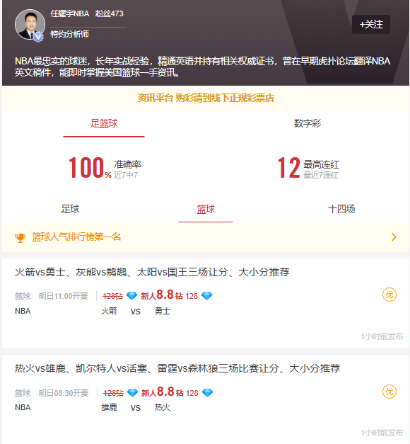 7脸红舍我其谁!特约分析师任耀宇NBA人气之选,速速点击查看